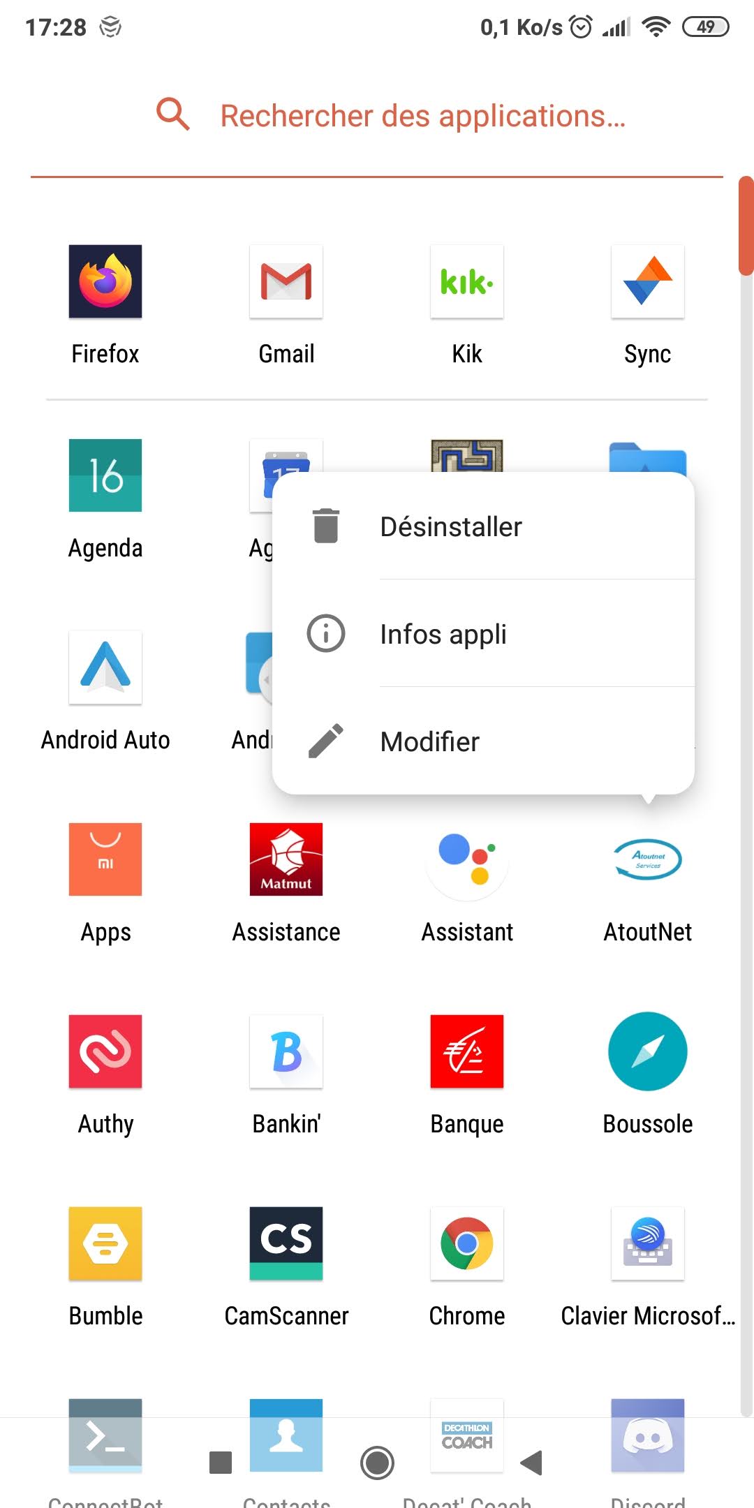 Faire un appui long sur l'icône de l'application