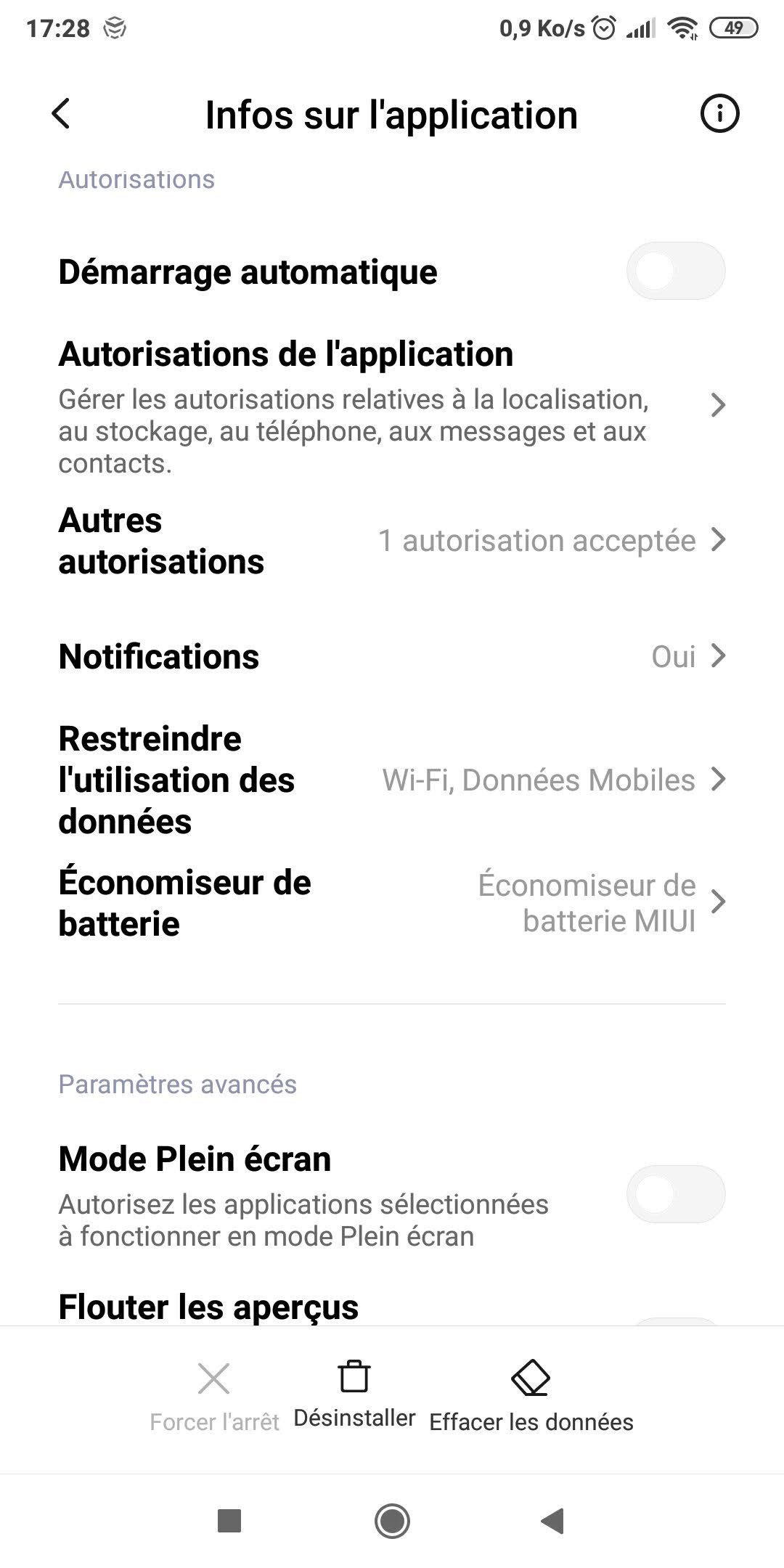 - Sélectionnez Infos appli