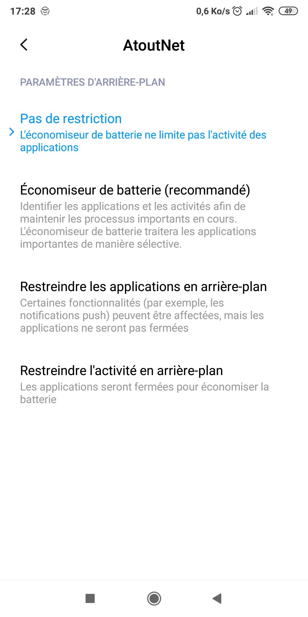Descendez sur l'écran suivant et sélectionnez Économiseur de batterie